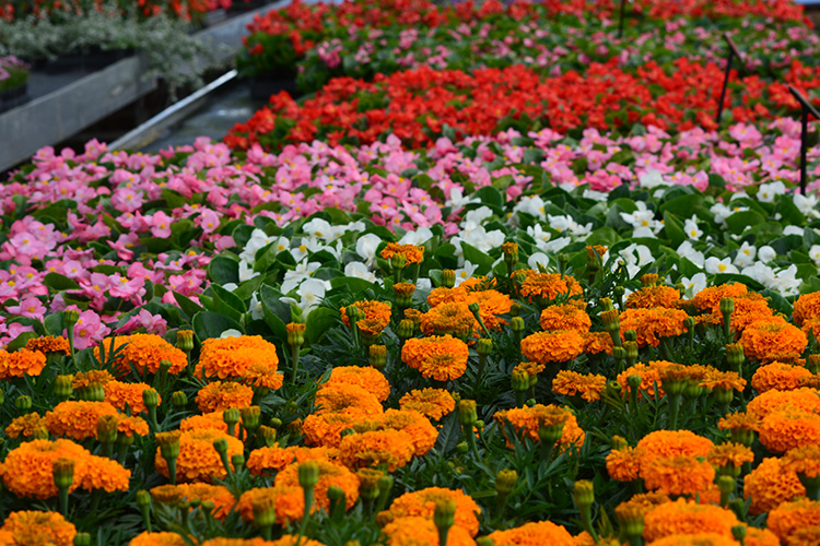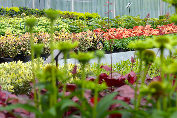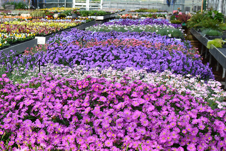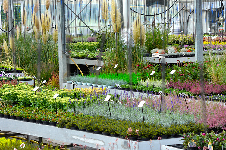 chrysanten, keukenkruiden alsook (in het voorjaar) een enorme keuze groente- en moestuinplanten.