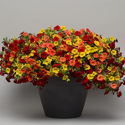 De Calibrachoa Cabaret® MixMasters® Firework produceert werkelijk een massa rode, gele en oranje bloemen. Het is een trendy topper om je terras of balkon te sieren met een zee van rode, gele en oranje kleine petunia-achtige bloemen.