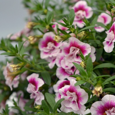 Uit ons Calibrachoa sortiment en van een andere veredelaar als de gelijkaardige Calibrachoa Cabaret® Serie bieden wij u onze Calita® Double Pink Bicolor aan. De serie is zeer uniek en zeer aantrekkelijk. Een exclusief 'eye-Catcher' voor uw bloembakken en sierpotten.