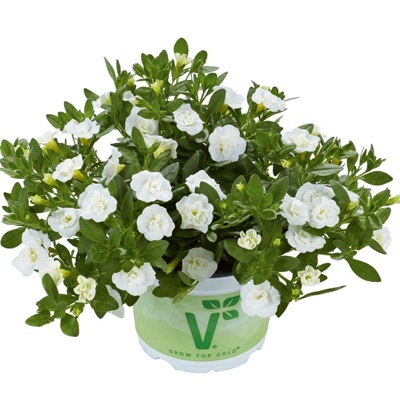 Uit ons Calibrachoa sortiment en van een andere veredelaar als de gelijkaardige Calibrachoa Cabaret® Serie bieden wij u onze Calita® Double Snow aan. De serie is zeer uniek en zeer aantrekkelijk. Een exclusief 'eye-Catcher' voor uw bloembakken en sierpotten.