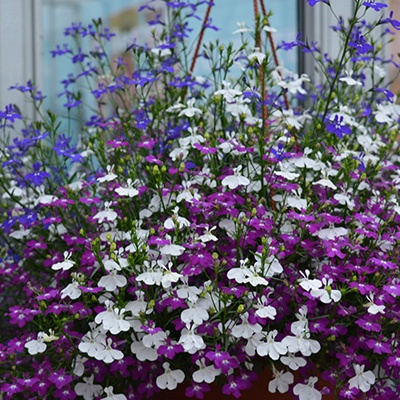 Beperkt in tuin? Creëer een bloemenparadijs met onze blauwe, witte en roze Lobelia in hangpotten.