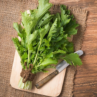 Brassica juncea kennen we in het nederlands als mosterdsla. Van deze éénjarige bladgroente bestaan verschillende varianten die allemaal eetbaar zijn. Deze plant, die familie is van de kolen, verdraagt vrieskou redelijk goed en houdt van een plek in zon of halfschaduw op losse, humusrijke bodem. Blad, bloemknoppen en bloempjes van Brassica juncea zijn zowel rauw als kort gewokt te eten. Voor rauw gebruik zijn de jonge blaadjes het lekkerste, ze geven een pittig accent aan een salade of op een broodje. Voor het oogsten van jong blad kan je plantjes die 15 tot 20 cm hoog zijn 5 cm boven de grond afsnijden, waarna het zal teruggroeien. Of je kan ze als pluksla oogsten door de grootste blaadjes te plukken.