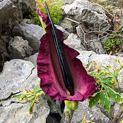 Nederlandse naam / volksnamen / synoniemen: drakenwortel, draken aronskelk, drakentonglelie, zwarte draak, drakondia