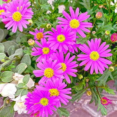 Brachyscome x multifida Delight Magenta is zeer populair in hangmanden en in bloembakken. Ze verdragen droge omstandigheden, maar profiteren van extra water. Planten zijn het best gediend met een plaatsje in volle zon, hoewel gedeeltelijke schaduw ook wordt getolereerd. Knip terug wanneer de bloei begint af te nemen om een extra blos te stimuleren en de aanplant vorm te geven.
