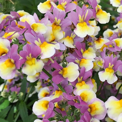 Nemesia-bloemen lijken van dichtbij op mini-orchideeën. Ze bloeien vanaf het late voorjaar tot de eerste vorst. Nemesia heeft weinig verzorging nodig. Als de plant stopt met bloeien knip je een derde van de plant weg dat nieuwe tak- en knopvorming zal stimuleren.