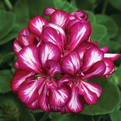 Pelargonium peltatum Corriente Explosive, ook wel bekend als dubbele hanggeranium, is een zomerbloeier met ietwat broze stengels. Deze Corriente Explosive dubbele hanggeranium bloeit van mei t/m oktober met donkerrood-witte bloemen en hangt bij voorkeur in de zon of halfschaduw. Tegen de muur in een bloembak, of op het balkon misstaat een hanggeranium nooit. Bijen, hommels en vlinders vertoeven graag op deze bloemen.