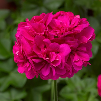 Pelargonium peltatum Corriente Hot Pink, ook wel bekend als dubbele hanggeranium, is een zomerbloeier met ietwat broze stengels. Deze Pelargonium peltatum Corriente Hot Pink dubbele hanggeranium bloeit van mei t/m oktober met donkerroze bloemen en hangt bij voorkeur in de zon of halfschaduw. Tegen de muur in een bloembak, of op het balkon misstaat een hanggeranium nooit. Bijen, hommels en vlinders vertoeven graag op deze bloemen.